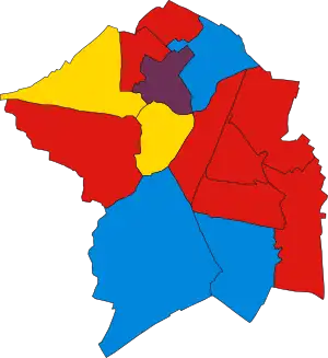 Last election 21 seats, 37.9% 12 seats, 32.4% 9 seats, 28.9%