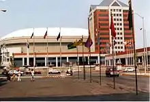 Pan American Plaza in 1988. Closing ceremonies were held inside the Hoosier Dome. These were the first Pan American Games to feature closing ceremonies in an indoor space.