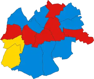 Last election 26 seats, 43.1% 12 seats, 30.9% 7 seats, 25.4%