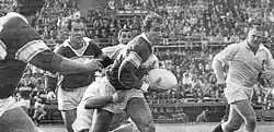The first match of the tour, v Banco Nación (with its captain Hugo Porta carrying the ball)