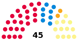 Party Seats Gains Losses Net gain/loss Seats % Votes % Votes +/−