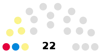 Party Seats Gains Losses Net gain/loss Seats % Votes % Votes +/−