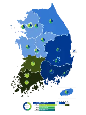North Gyeongsang 991,424 64.73 147,440 9.63 240,646 15.71 124,858 8.15 17,664 1.15 6,240 0.41 3,365 0.22