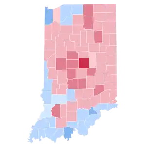 This is the last time that a Republican presidential candidate won Indiana by a popular vote share that was lower than the popular vote share won four years earlier.