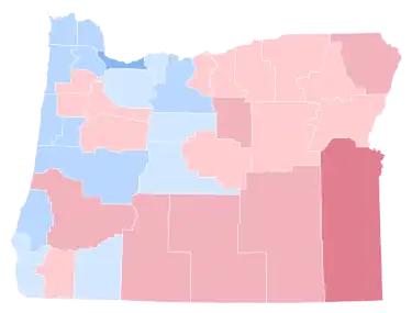 As of the 2020 presidential election, this is the last occasion when Curry and Jefferson counties have given a plurality to the Democratic Party nominee.[3] It was also the first election since 1888 when Crook County had not backed the winning candidate, although Bush’s margin was less than 200 votes and was only a plurality. Nevertheless, this would mark the county becoming a Republican bastion.[4]