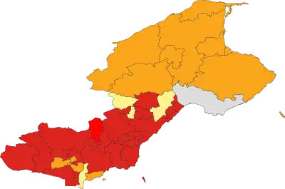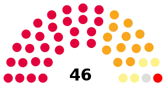 Party Seats Gains Losses Net gain/loss Seats % Votes % Votes +/−