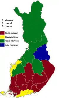![]() Martti Ahtisaari Elisabeth Rehn Paavo Väyrynen Keijo Korhonen ![]() Martti Ahtisaari Elisabeth Rehn | ||||||||||||||||