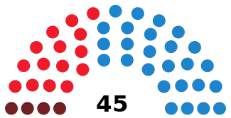 Last election 17 seats, 33.5% 24 seats, 45.3% 4 seats, 11.3%[lower-alpha 1]
