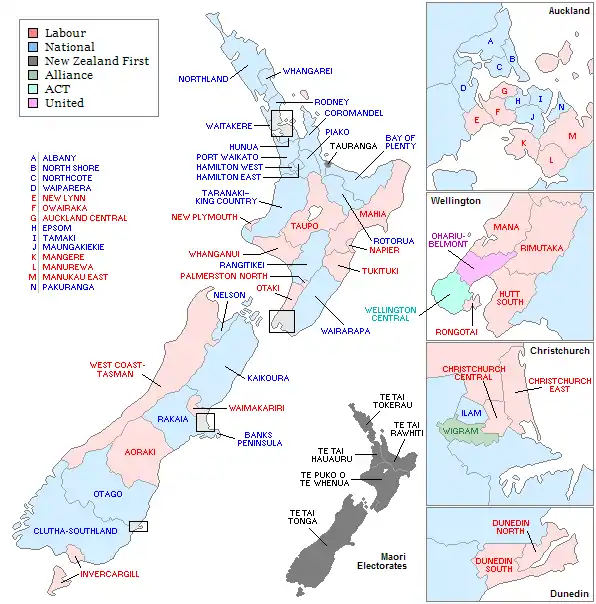 - ↑ "1996 GENERAL ELECTION – OFFICIAL RESULTS AND STATISTICS". ElectionResults.govt.nz. Electoral Commission. 18 October 2020.