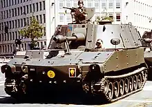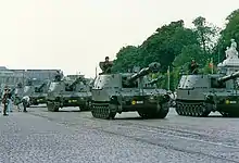 The 1st Field Artillery Regiment was established on 21 February 1836, when the Regiment of Artillery was split up into three new regiments. The regiment participated in both World Wars. During the Second World War, it remained active after the Eighteen Days' Campaign, the campaign of the Belgian army in May 1940 when Belgium was invaded by Germany. The First Belgian Battery, which was created in the United Kingdom in February 1941, participated as part of the Brigade Piron in the Battle of Normandy and in fights in Belgian and Dutch Limburg during the liberation of Western Europe.[1] For this reason, the regiment's first battery, A Battery, is known as Batterie Libération (French for "Liberation Battery").