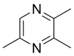 2,3,5-Trimethylpyrazine (chemical formula C7H10N2) is one of the most broadly used edible synthesis fragrances. It comes from baked food, fried barley, potatoes, and peanuts. 2,3,5-Trimethylpyrazine is used for the flavor in cocoa, coffee, chocolate, potato, cereal, and fried nuts.