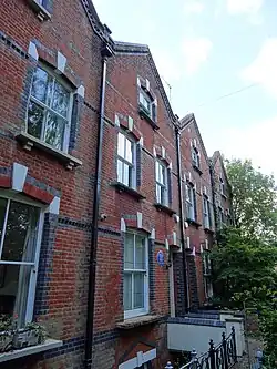 Shortly after his arrival in England, in 1936 Pevsner took a lease on 2, Wildwood Terrace, in the London suburb of Hampstead. The house was found for him by his friend, the poet Geoffrey Grigson who already lived at No. 3. in the street.[lower-alpha 1] Wildwood Terrace remained Pevsner's London home until his death in 1983.[9] The house continued in the possession of the Pevsner family until its sale in the 21st century.[10] Savills, the selling agents, described the property as "Pevsner's very own 'Building of England'".[11] In 2007 English Heritage commemorated Pevsner's residence by the erection of a blue plaque at the house.[12][13]