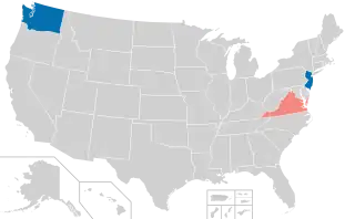 Republicans maintained control of both houses of the Virginia General Assembly, while Democrats won control of the New Jersey General Assembly, and evenly split the State Senate.[2] Democrats additionally won control of the Washington House of Representatives through special elections.[3][4][5]