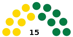 Last election 62.47%, 15 seats 25.08%, 0 seats