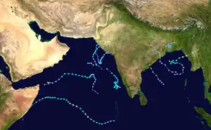 The India Meteorological Department (IMD) was designated a Regional Specialized Meteorological Center by the World Meteorological Organization in July 1988 to monitor and warn on tropical cyclones in the northern Indian Ocean. The basin is defined between 45° and 100° E, and north of the equator. The agency also used geostationary satellites and a network of buoys to track the storms, and utilized various tropical cyclone forecast models to predict future tracks.[1] The American-based Joint Typhoon Warning Center (JTWC) also issued warnings for storms in the basin on an unofficial basis.[2]