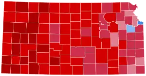 Kansas was won by incumbent President George W. Bush by a 25.4% margin of victory. Prior to the election, all 12 news organizations considered this a state Bush would win, or otherwise considered as a safe red state. On election day, it trended Republican from the 2000 election by a swing margin of almost 5%. He won every single congressional district and county, excluding two: Wyandotte County and Douglas County.