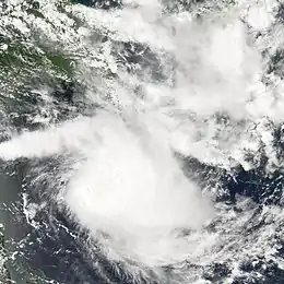 | Peak intensity | 55 km/h (35 mph) (10-min); 995 hPa (mbar) |
