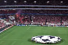 Benfica beat Celtic by 3–0 on 1 November 2006; here is the pre-match presentation with the giant UEFA Champions League logo.