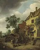 NK3387 | A. van Ostade | Mensen lossen turf en dragen het een huis in | 2644 | Limburgs Museum |