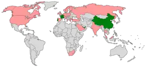 Countries that hosted F1 Powerboat races in 2007, shown in green. Former host nations are shown in pink.
