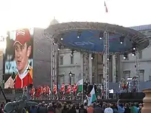 A total of 21 teams were invited to the 2007 Tour de France.[2] Each team sent a total of nine riders to participate in the Tour, which brought the starting total of the peloton to 189 riders.[3] The presentation of the teams – where each team's roster are introduced in front of the media and local dignitaries – took place at Trafalgar Square in London, the day before the opening prologue held in the city.[4]