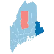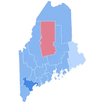 Maine once again displayed its status as a blue state, with Democrat Barack Obama taking the state with 57.71% of the vote and a difference of 126,650 votes. Maine is one of only two states, along with Nebraska, to not allocate its electoral votes via a winner-take-all system; rather, two electoral votes are allocated to the statewide winner and one for the winner in each individual congressional district. Maine at-large and its 1st district has voted Democratic since 1992, and the 2nd district did the same until Donald Trump won it in 2016 and 2020. It is also the only state in New England where a county voted for Republican John McCain, with Piscataquis County giving McCain roughly 50.7% of the vote.