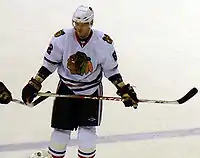 Shortly after signing Hossa, the team disclosed that he was still rehabilitating a shoulder injury he sustained during the previous post-season.[12] He underwent shoulder surgery and ended up missing the first 22 games of the season.[13] During the off-season, The NHL Players' Association (NHLPA) filed a grievance, stating that the Blackhawks missed the deadline for giving qualifying offers to restricted free agents. This caused General Manager Dale Tallon to quickly sign eight players to make sure they did not end up as unrestricted free agents. The mistake proved to be a large influence in the removing of Tallon as general manager. He was replaced with Stan Bowman, the assistant general manager and son of Hockey Hall of Fame coach Scotty Bowman.[14] The NHL also investigated Hossa's contract as well.[15] The Blackhawks named Kevin Cheveldayoff, the general manager of the Chicago Wolves of the American Hockey League (AHL), as assistant general manager.[16] The team also promoted Assistant Coach Marc Bergevin to the position of director of player personnel.[17]