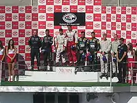 This damage would however hamper the Corvette as the first pit stops took place and the Sangari Team Brazil crew had difficulties refueling the car.[4] The No. 1 Maserati inherited the lead following its pit stop but had to relinquish it after the team was penalized for speeding in the pit lane.[3] This allowed the No. 14 Saleen, now driven by Ryan Sharp, to take the lead which it held until the second round of pit stops where the No. 33 Maserati took over at the front of the field. Karl Wendlinger returned to the cockpit and was able to overcome the deficit and retake the lead from the Maserati in the last ten minutes of the race. On the final lap the No. 33 was passed by the No. 1 team car to complete the podium.[3]