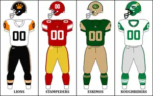 As the league approaches the 100th Grey Cup, the CFL celebrated the 1960s with all eight teams wearing retro-themed uniforms from that era at different points in the season. All teams wore their retro uniforms in Week 3.[8] The Saskatchewan Roughriders and the Calgary Stampeders were the only teams to wear both home and away retro uniforms, while the remaining teams wore one set of uniforms. The BC Lions wore their black alternate jerseys in combination with their retro pants and helmets for a "retro look," but did not introduce new home retro jerseys.