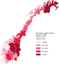- ↑ "Valg 2009 Landsoversikt - Stortingsvalget" (in Norwegian). Regjeringen.no. Archived from the original on September 26, 2009. Retrieved September 27, 2009.