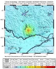 15. 1 2 3 "Magnitude 5.0 – ONTARIO-QUEBEC BORDER REGION, CANADA". United States Geological Survey. Archived from the original on 26 June 2010. Retrieved 23 June 2010.