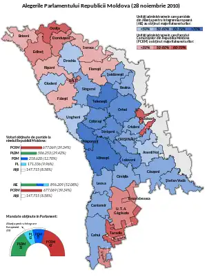 Parliamentary elections were held in Moldova on 28 November 2010 after parliamentary vote failed to elect a President for the second time in late 2009.[1]