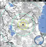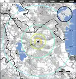The 2012 East Azerbaijan earthquakes – also known as the Ahar earthquakes – occurred on 11 August 2012, at 16:53 Iran Standard Time, near the cities of Ahar and Varzaqan in Iran's East Azerbaijan Province, approximately 60 kilometers (37 miles) from Tabriz.[7] They comprised a doublet separated by eleven minutes, with magnitudes of 6.4 and 6.2 Mww.[8] At least 306 people died and more than 3,000 others were injured, primarily in the rural and mountainous areas to the northeast of Tabriz (though 45 died in the city of Ahar).[9] The shocks were felt in Armenia and the Republic of Azerbaijan, though no major damage was reported.[10]