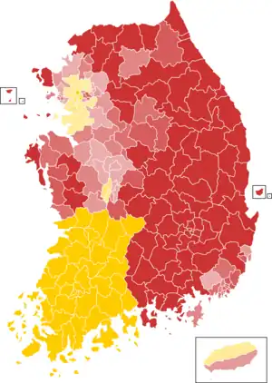 | 6 Sep. | Gwangju | P | 1,385 | 27.6 | 2,182 | 43.4 | 1,257 | 25.0 | 200 | 4.0 | 5,024 | 100 |