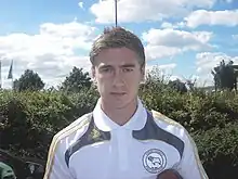 July began with Callum McFadzean joining Burton Albion on a six-month loan deal,[17] and with pre-season training underway, defender Craig Alcock was added to the squad on 15 July.[6] Three days later another defender was added to the squad as Blackpool youngster Harrison McGahey was signed for an undisclosed fee.[18] United kicked off their pre-season fixture list on 19 July but suffered a disappointing 4–0 defeat at Burton Albion with Callum McFadzean, on loan from the Blades, numbering amongst Burton's goal scorers.[19] A trip to Northampton Town the following week earned United a better result as they drew 1–1 with their hosts.[20] On 25 July, George Long joined Oxford United on a six-month loan deal,[21] while the same evening United recorded their first win of pre-season when they beat Scottish Premiership side Dundee 4–2 at Bramall Lane.[22] On 29 July, incumbent Player of the Year, Harry Maguire, was sold to Premier League side Hull City for £2.5 million after months of speculation about his future at Bramall Lane.[23] The same evening the Blades suffered a narrow 1–0 home defeat at the hands of Huddersfield Town in the latest of their pre-season friendlies.[24] Two days later United beat Turkish Süper Lig champions Fenerbahçe 2–1 in a charity friendly in aid of the Soma mine disaster,[25] before completing their pre-season fixture list with a 2–0 loss to York City at Bootham Crescent on 2 August 2014.[26] With the start of the new season imminent, on 4 August United signed experienced striker Michael Higdon from Dutch side N.E.C. Nijmegen for an undisclosed fee on a two-year contract.[16]