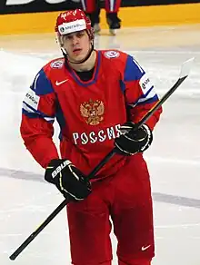 At 25:20, Zaripov was given a 2-minute interference penalty, and at 26:51, Olli Palola scored on a rebound in the slot to put the Finns up 2–1. The Russians answered back just 43 seconds later with Vadim Shipachyov setting up Alexander Ovechkin for an easy backhander in front of a diving Pekka Rinne. That goal seemed to unleash the Russians' momentum with Finland picking up two consecutive 2-minute penalties, giving the Russian team a two-man advantage for over a minute. That time was enough for Evgeni Malkin to find the back of the net at the 35:36 mark and retake the lead for Russia with a hard slapshot. With less than two minutes to go, Malkin was given a 2-minute hooking penalty. The Finnish team was unable to convert on the ensuing power play. The Russians outshot Finland 18–5 in the second period.[5][6][7]