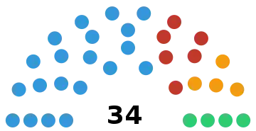 34 seats in the Parliament 18 seats needed for a majority | ||||||||||||||||||||||||||||||