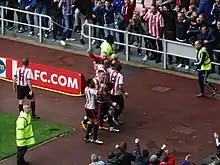 ![]() Joyous Black Cats celebrate a goal at home to Chelsea, May 2016 | |||
