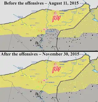 - ↑ Edward. "SDF advance again in the countryside of Al-Hasakah and warplanes target the southeastern countryside of Homs". Syrian Observatory For Human Rights. Retrieved 14 November 2015.