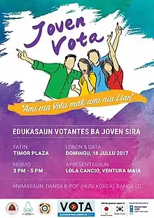 - 1 2 3 "Timor-Leste/Eleições: Da euforia da campanha à calma da reflexão, sem cartazes". www.dn.pt (in European Portuguese). 20 July 2017. Retrieved 2023-01-30.