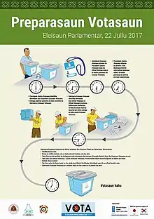 - 1 2 "Timor-Leste/Eleições: Timorenses terão mais sítios para votar nas legislativas de 22 de julho". www.dn.pt (in European Portuguese). 22 June 2017. Retrieved 2023-01-30.