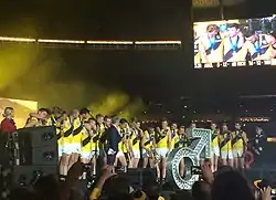 ![]() Players celebrating on stage after winning the 2017 AFL Grand Final | |||