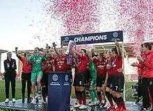 ![]() Manchester United Women lifting the FA Women's Championship trophy | ||||