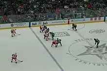 The season was suspended by the league officials on March 12, 2020, after several other professional and collegiate sports organizations followed suit as a result of the ongoing COVID-19 pandemic.[3][4] On May 26, the NHL regular season was officially declared over with the remaining games being cancelled.[5] The NHL officially resumed play in two controlled locations in August 2020, with Western Conference teams, including Dallas, playing in Edmonton and Eastern Conference teams in Toronto. The Stars advanced to the playoffs and played in a round-robin tournament, which determined the team's seed for the playoffs; Dallas was ultimately seeded third,[6] entering them into a first-round series against the Calgary Flames, which they won in six games.[7] The Stars then faced the Colorado Avalanche in the second round, defeating them in seven games.[8] In the Western Conference Final, the Stars defeated the Vegas Golden Knights in five games to advance to the Stanley Cup Finals for the first time in 20 years.[9] They were ultimately defeated in six games by the Tampa Bay Lightning.