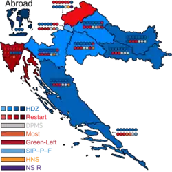 The ruling HDZ obtained an upset victory over the Restart Coalition, who had previously been leading in opinion polls for several weeks prior to the elections.