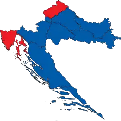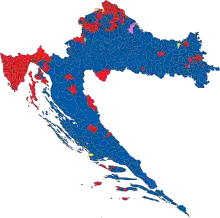 Results of the election based on the majority of votes in each municipality of Croatia and Zagreb's four electoral districts