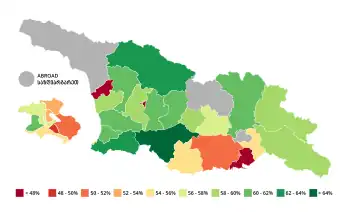 | 20 | Kharagauli, Sachkhere, Chiatura | 61.91 | 69.53 | 13.29 | 2.75 | 2.34 | 2.33 | 3.77 | 0.93 | 0.43 | 0.56 | 4.07 | 56.24 |