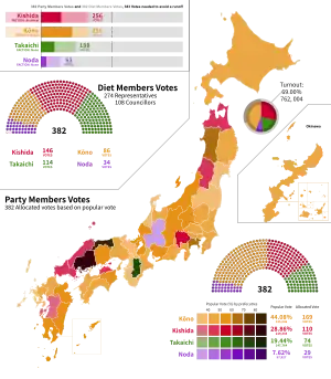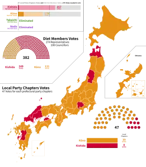 - 1 2 "党員投票開票結果" (PDF) (in Japanese). The Liberal Democratic Party of Japan. Archived from the original (PDF) on 30 September 2021. Retrieved 29 September 2021.