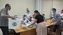 Grosu failed to get his government approved due to the socialist-led opposition boycotting the vote, which resulted in the vote failing due to a lack of a quorum.[16] The two failed attempts made early parliamentary elections possible,[17] and Sandu asked the Constitutional Court to verify the constitutionality of dissolving parliament and holding snap elections.[18] However, on 31 March Parliament voted to impose a 60-day state of emergency, during which a snap election could not be held, to curb the COVID-19 pandemic.[18] On 15 April the Constitutional Court ruled in favour of dissolving parliament.[19] On 28 April the Constitutional Court declared the state of emergency voted by the Parliament on 31 March unconstitutional as the Decision of Parliament which instituted it was adopted in violation of the rules of procedure, having failed to establish why exactly the executive need extended powers.[20] Later the same day, president Maia Sandu signed the dissolution decree of the Parliament and established the snap parliamentary elections to be held on 11 July 2021.[21]
