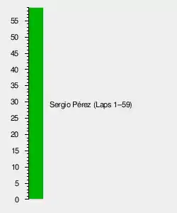 • ^2 Sergio Pérez received a five-second time penalty for falling more than ten car lengths behind during the safety car. His final position was not affected by the penalty.[21]